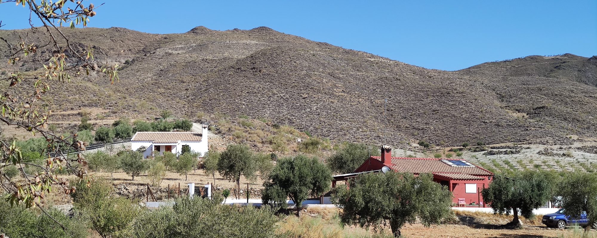 Nestled in the foothills of the Sierra de Los Filabres stand Casa Roja and Casa Mary. These two rustic houses snuggle together in a secluded valley near Uleila de Campo amongst fields of olives and almond trees, with spectacular views south. “That view” caught us in its spell the first time we stood here, and it catches everyone else who visits. We bought Casa Roja intending it to be a short-term foothold to test life in Spain, but the area and the people just drew us in.