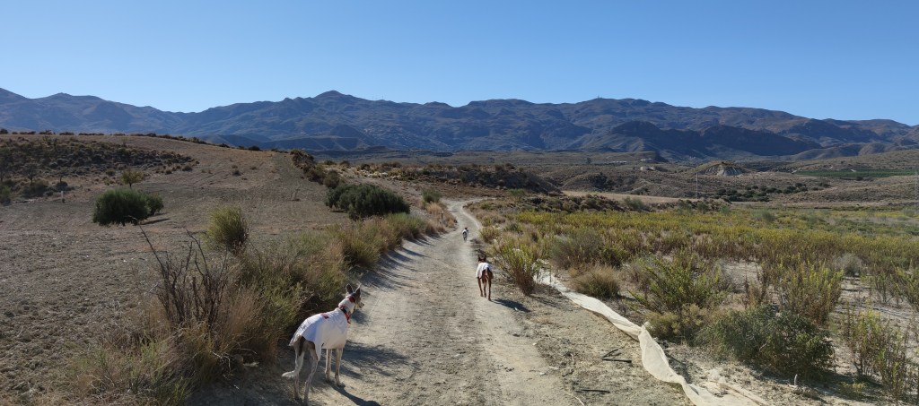 The weather here is amazing. Almeria is apparently the sunniest area of Spain, so if you like the outdoor life, it’s definitely the place to be. Winters on the coast are warmer than inland – here we can occasionally get frost, and snow above 800m, but most of the time winter is dry, quite windy at times but often sunny. Imagine harvesting olives in a T shirt in November in temperatures of 20c. or a Christmas Day walk in 15c and blazing sunshine. One advantage of inland locations like ours is the low humidity, which makes even hot days tolerable.